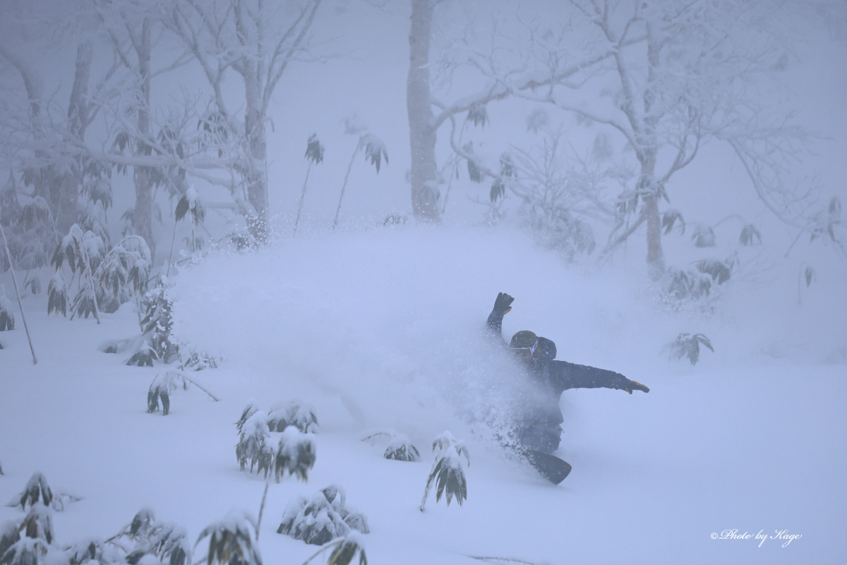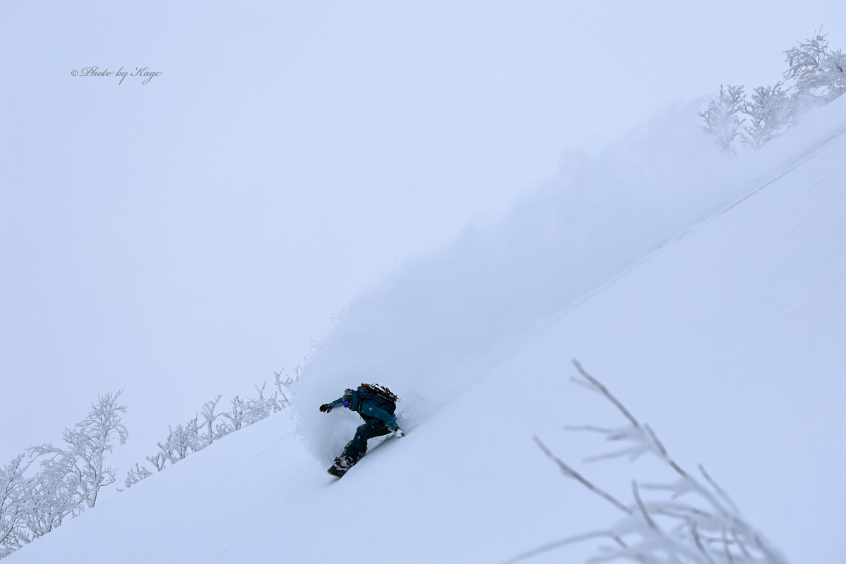 今日の最高気温は町でプラス2℃だったが、登っているとサウナに入っているように蒸し暑く汗ダラダラで、身体の調子が悪いのかと心配になった程だった。ドロップポイントに到着すると、雲海のように少しずつ標高の低い所にガスが湧いて来ていたし、ドロップポイントの手前では風が抜けていて思いのほか雪付きが悪く、下の硬いのにも当たっていたが、狙っていた斜面の核心部は底辺りもなく全面超絶良い雪だった。今朝のゲレンデ状況から到底想像付かないくらい天と地ほどの差があり、今日ニセコのゲレンデ周辺に居る大勢の人に今日の写真を見せても、今日のニセコだと信じる人は誰も居ないかもしれないくらいだ。3本目は晴れに当たったが、今日のメインディッシュだった1&2本目を滑った後に晴れて来たのが多少悔やまれるが、あまりに雪が良くて本当に最高だった。朝出勤時も午後帰宅時も雨だったし、下山時の帰り道はまるで春のネッパリみたいな雪だった、この周りの状況から考えれば本当にイリュージョンレベルで、まるで天国だった。