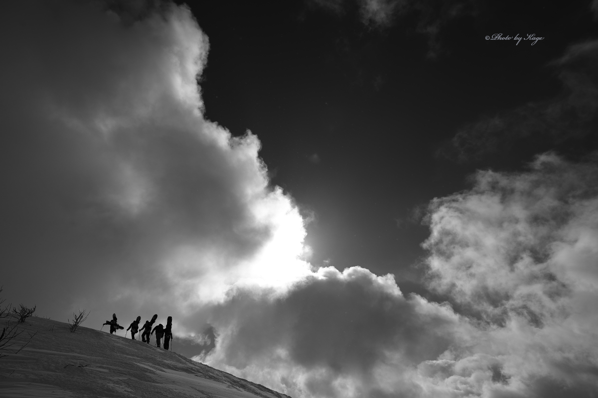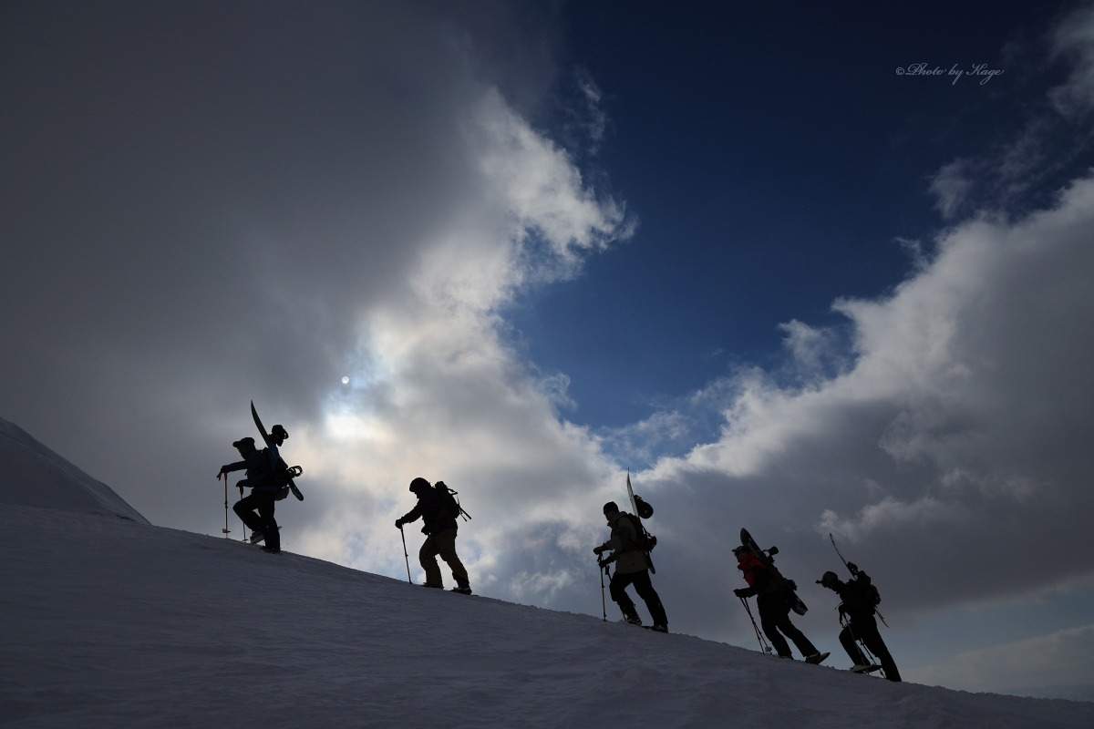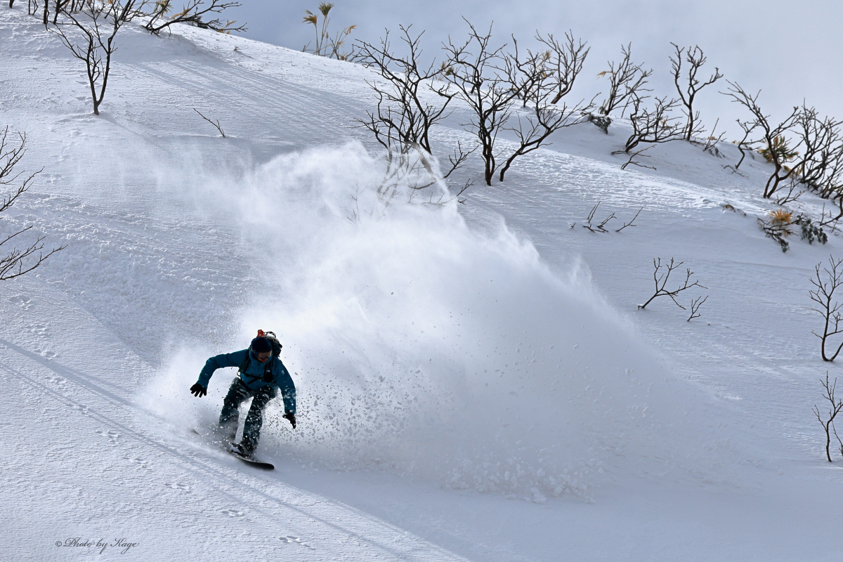 シーズン頭にプライベートプランでカメラマン同行を確約して欲しいとお客様から相談があり、余程の不測の事態が無い限り同行する約束をした数件の内の一件が今日のツアーでした。大学の友達とそのルームメイトの26歳の男性3人。全員初めての日本で、今日が初めてのバックカントリー、そんな彼らの初BC Dayを写真に収めさせて頂きました。