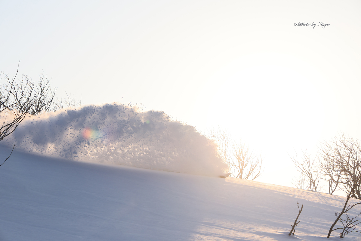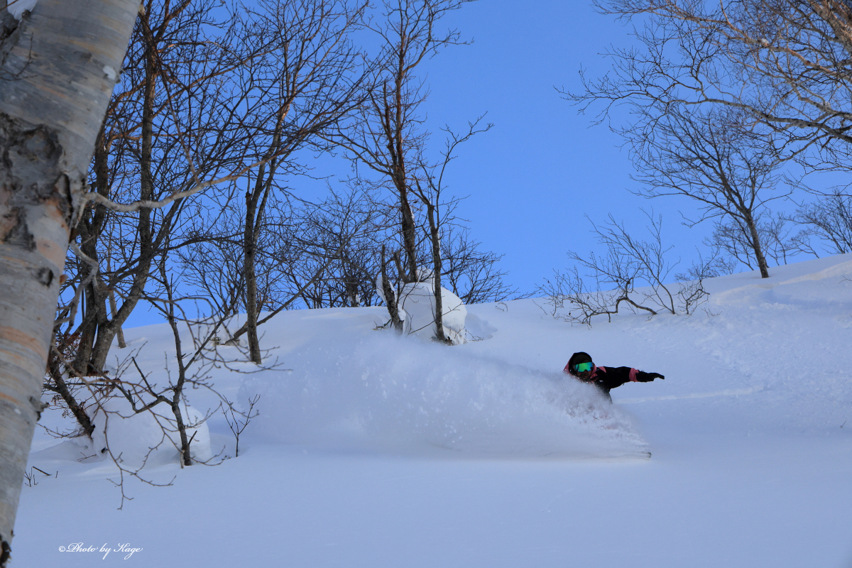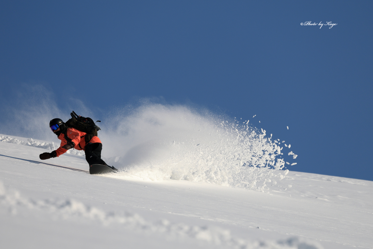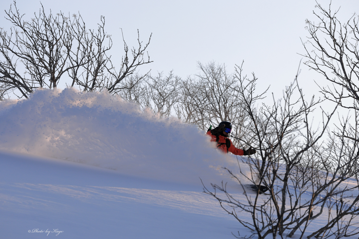 そんなワケで今日到着の常連様には、早朝東京を出発して飛行に乗ってニセコ到着してツアー出発とバタバタで大変だったでしょうが、今回滞在中もしかしたら晴れもパウダーも今日しか無いし、僕が撮影出来るのも今日を逃すと無い可能性があったため、強行して午後からツアーに出ましたが、ミッション成功でした。最高でした。