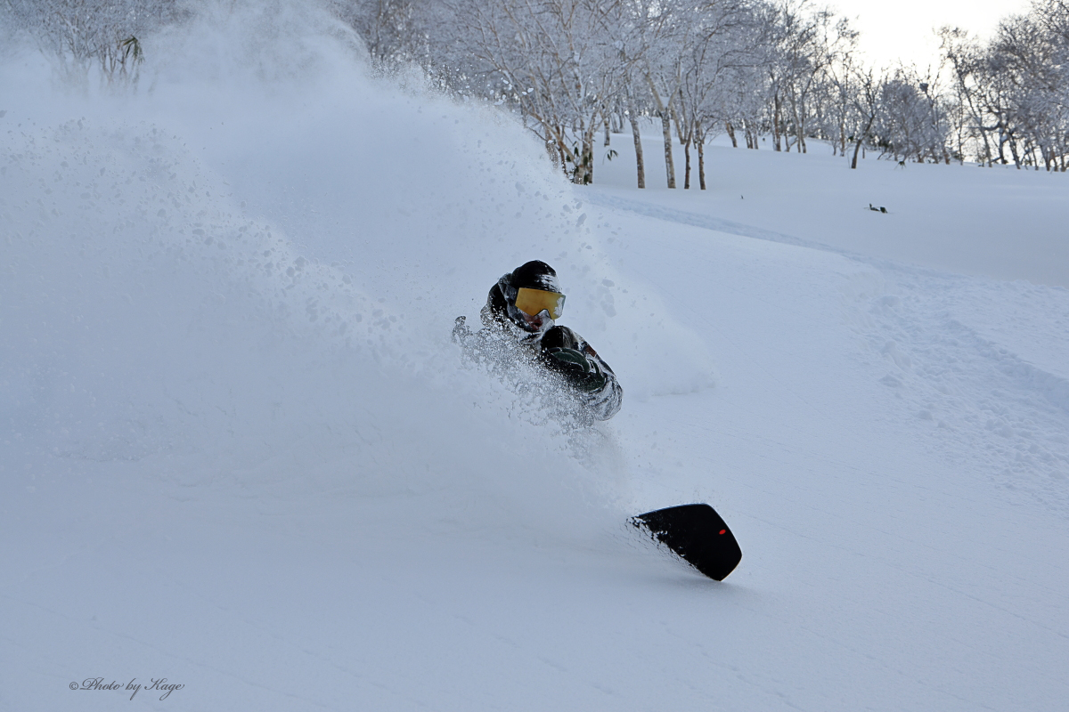 今朝仕事のためにちょっと早起きして4時に起きたのだが、その時に「あぁ全然積もらなかったなぁ」と思ったのだが、ニセコ町にある僕の自宅では10cmあるかないかくらいの降雪しかなく、除雪の必要もないくらいで、むしろ昨日の夕方0℃だったせいでの着氷の方が深刻で、車に雪が凍り付いていた。アンヌプリにあるPowder Companyに出勤しても、タップリ積もったという感覚は無かったのだが、お隣の蘭越町は結構降雪があったようで、山に向かう道路も除雪が追い付いていないし、山に行って歩き始めてビックリ仰天の今季一とも言えるドン深状態だった。スノーシュー履いていてもラッセルは股~腰、ちょっと斜度がある所だと胸くらいの深さでラッセルは本当に大変な一日となった。そのためか山は連日の賑わいから一転、ほぼ貸切状態で静まり返っていた。
