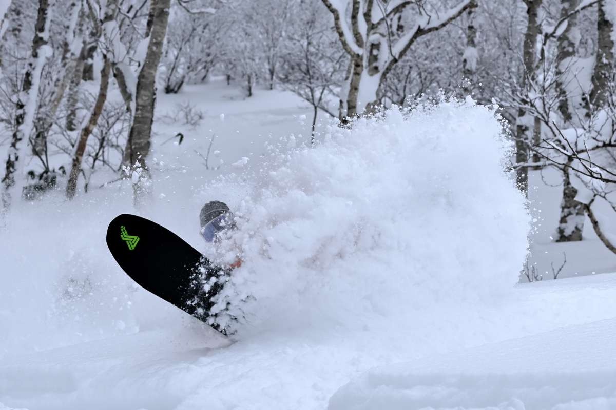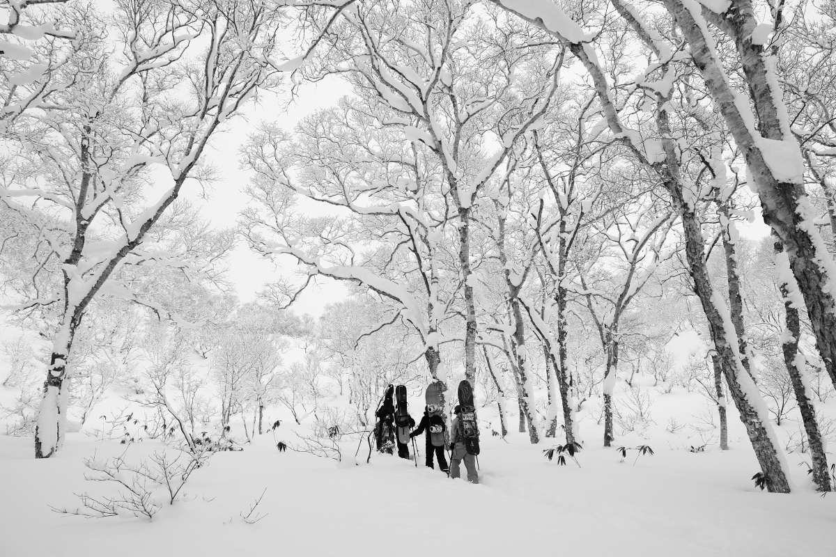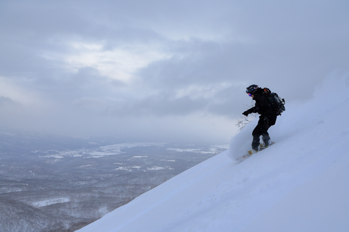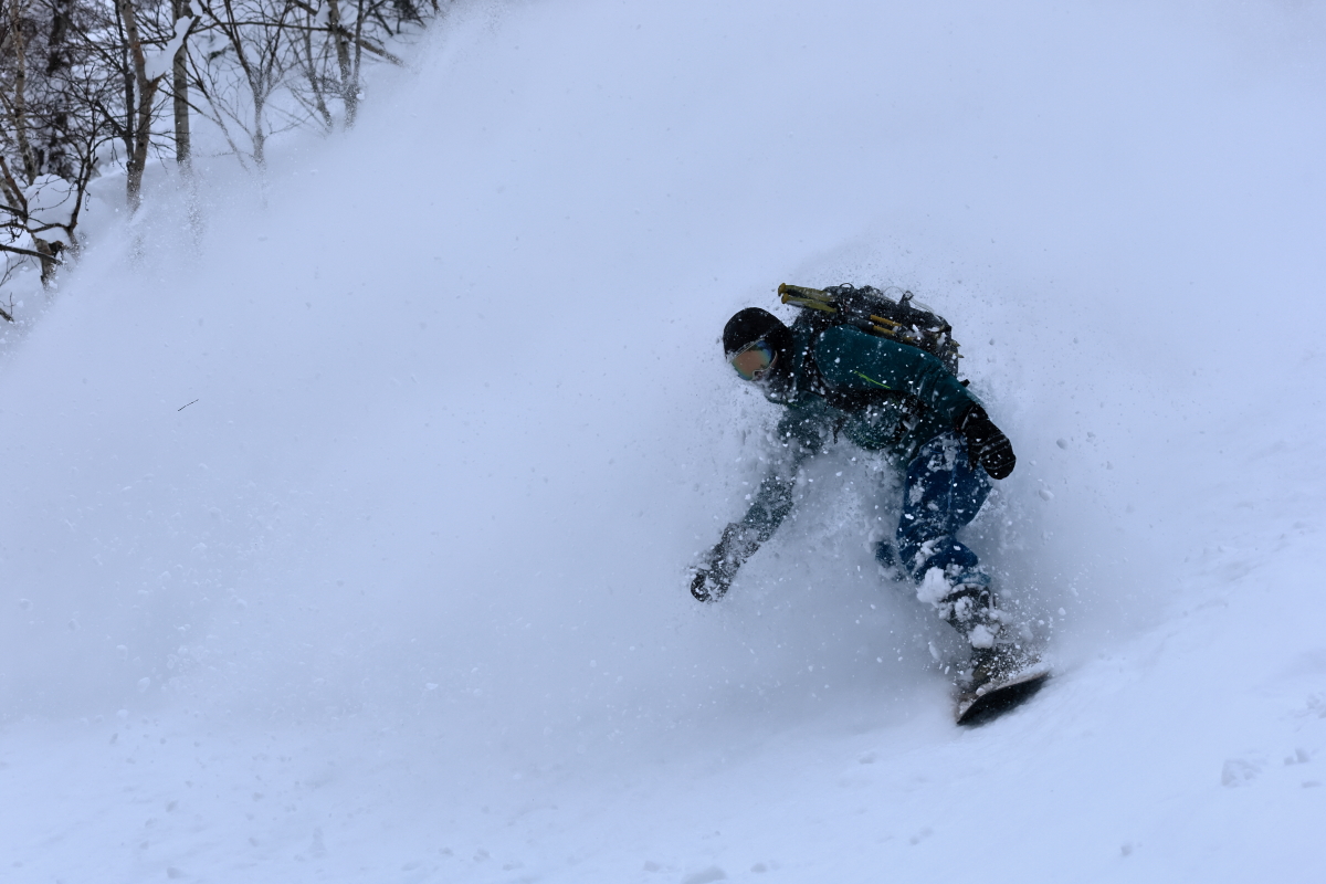 朝出勤時の僕の車の外気温はー15℃を示し寒い朝だったが、帰宅する夕方には0℃を示していて、温度変化の激しい一日となった。よくある放射冷却で冷えた朝は終日晴れてThe Dayとなってくれる事が多いが、今日は朝は晴れ間も見えたものの山の上には常にガスがあり白い一日となった。そのため、残念ながら標高の高いオープン斜面を狙う事は出来ず、ツリーのある斜面をチョイスする事になった。昨日からの降雪があまりなく、風も弱かったので斜面はリセットされていない事が予想されたので、なるべく前日までに人の入り込んでいないエリアへ行きたいのだが、まだまだ正月休みの人も居てニセコには多くの人が居る。BCで有名なアクセスポイントの一つであるとある駐車ポイントは今日を含め連日大氾濫状態だ。前日からの斜面のリセットが無い年末年始のニセコで、ガスによる視界不良のない標高帯で、且つなるべくブッシュや笹が少なく、人の入り込んでいない所を探すのはそう簡単ではないが、今日僕らが滑った場所はほぼノートラックだった。ガスによる視界不良も無く、懸念された温度変化による雪質の悪化も殆ど無く、良い雪を滑る事が出来ました。