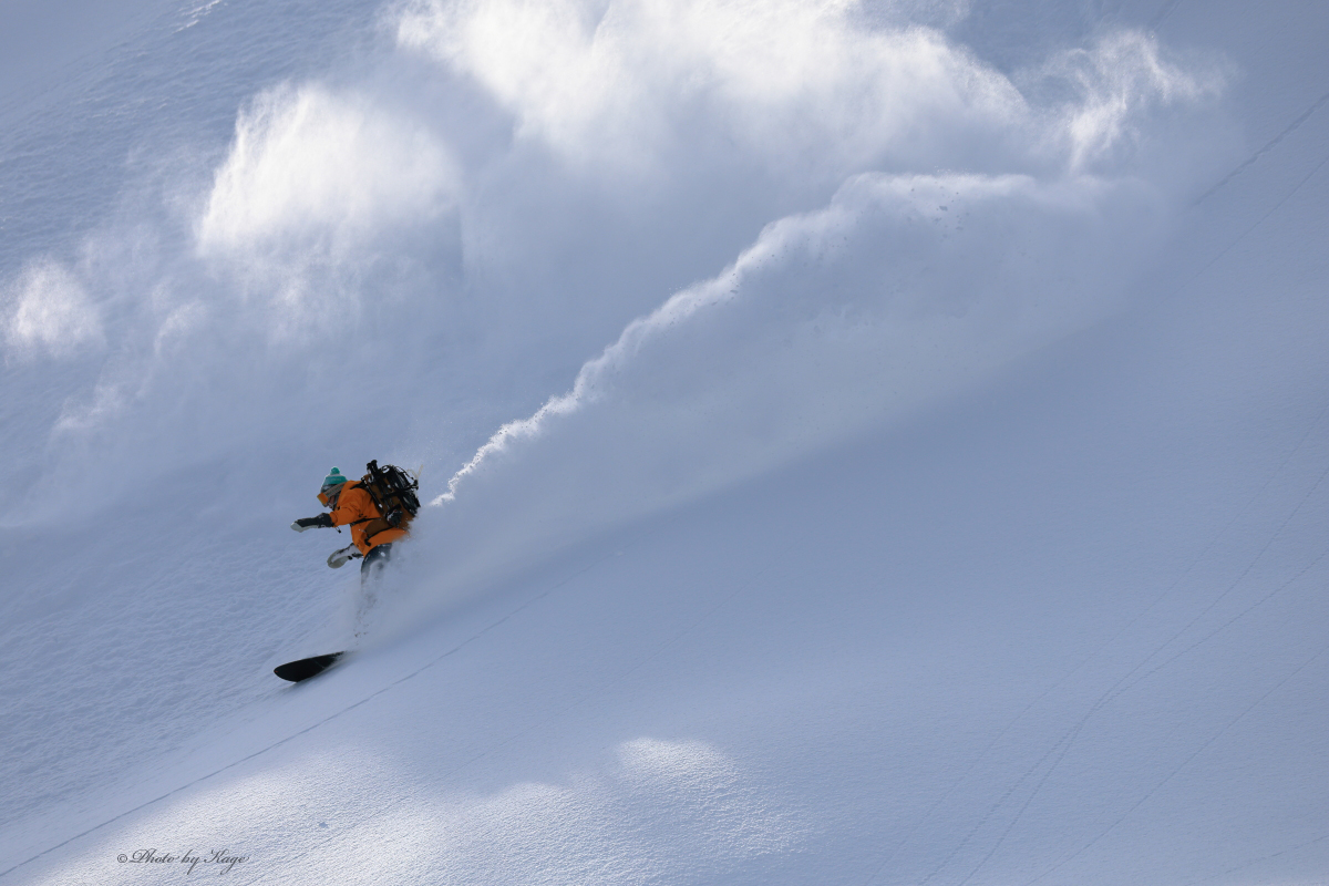 この最高の天気に今朝、一昨日ご参加頂き今日もご参加のPhoto Sessionを熱望して下さった別グループの外国人の方に「今日本当に私達の方に来てくれないの?あなたと一緒に行きたかったわ!」と言われて心苦しかったが、この最高の天気の中良い雪を滑って記憶だけ残すのか、写真撮影をして形にも残して、視覚的にも残して、記憶をより濃く残すのかは手前味噌だが大違いのように思う。こうしてPhoto Sessionのリクエストを頂いても、お応え出来ない場合も多々ありますが、写真の購入は後から決めれるのでまずはBCツアーご予約時にPhoto Sessionのリクエストを心よりお待ちしております。過去何度もあるようにお客様のツアー中の写真が雑誌の1ページを飾る事もありますよ。次はあなたの番かもしれません(笑)。今日ご参加の常連様から数人から「Kageさん無しでは考えられなかった。最高でした!!」等と感謝のメッセージも頂けて、写真と僕と言う存在を有難く思って頂けるのは本当に嬉しい限りです。これからも頑張ろう。