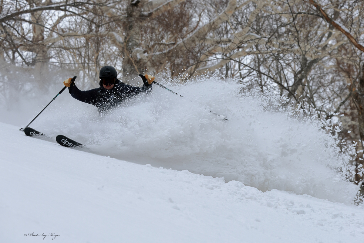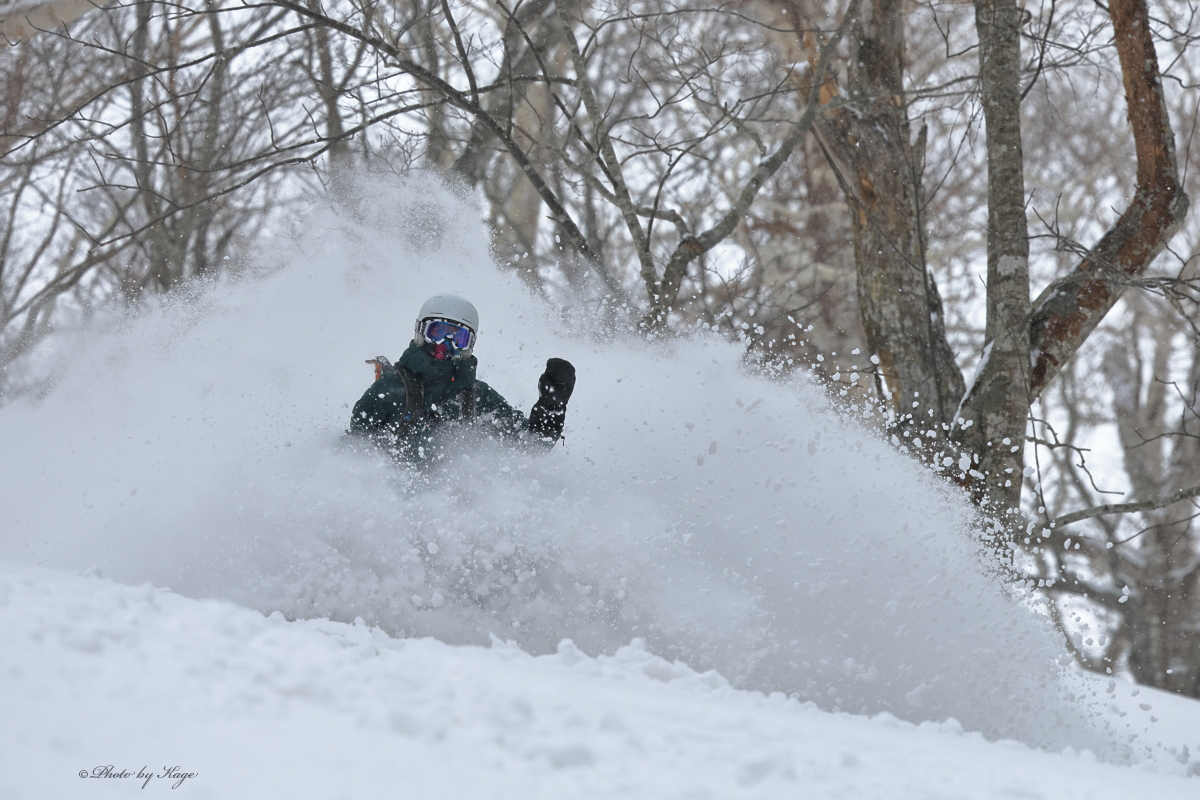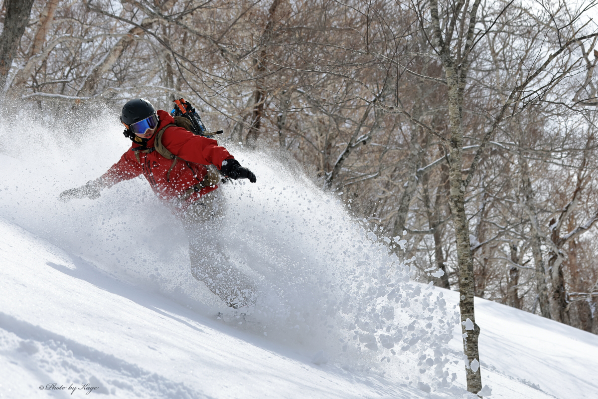 ここ数日続いた4月中旬並の暖気と吹き荒れた爆風と雨の影響でニセコ全域でクラストやモナカ、アイスバーンなどとなっており、季節の変わり目で厳しいコンディションとなっているが、未明の僅かな降雪と風により悪い下地の上にパウダーが少し載り、今日は写真的にはハイシーズンに逆戻りといったパウダーショットが撮れました。