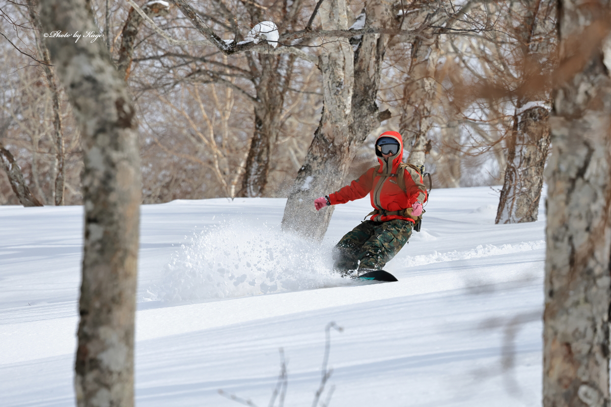 日本でのスノーボード一本目で写真的にはまるでハイシーズンのパウダーショットをGETしたRさん。
