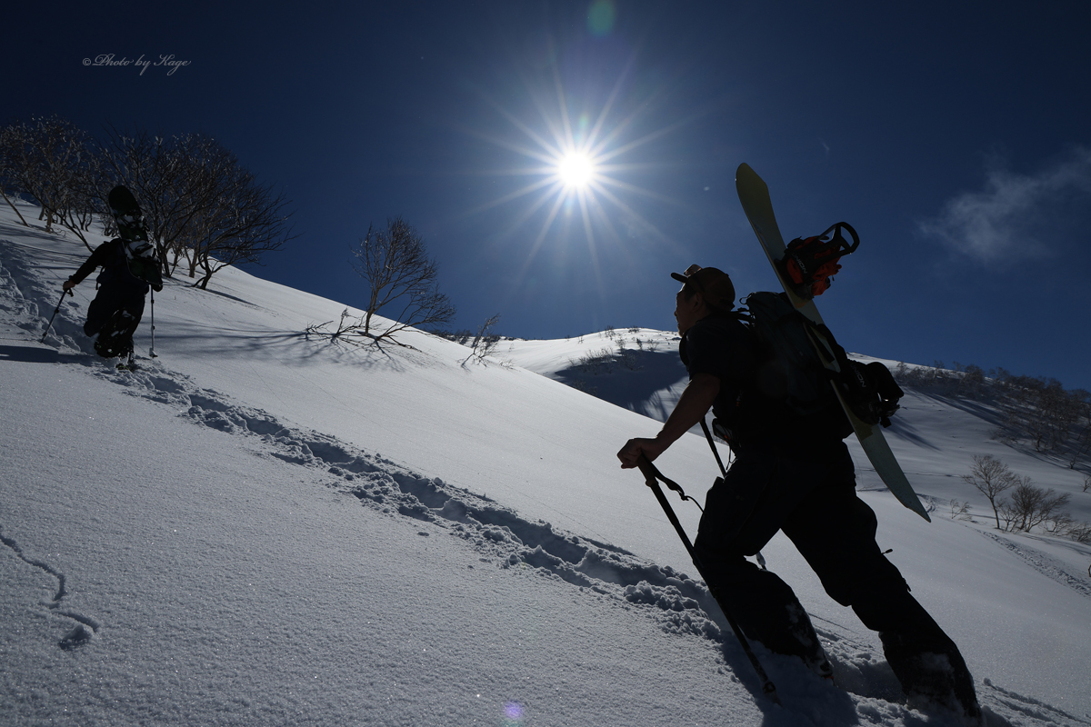 3月2日、このお二人のニセコ到着日にフィルムクラストの張り始めたディープシャクシャクの春雪を当て、その後3日&4日は全山氷の山と化し、極僅かなパウダーを求めてカチカチガリガリを彷徨い歩き、殺人級の硬さの山にあるピンポイントパウダーを滑っていた。そして今日、15cm程の湿雪が積もり朝からプラス気温のためストップスノーやガスによる視界不良が懸念されたが、朝一はスキー場で雲海ライドを楽しみ、その後BCへ行ったら予報になかった晴天となり久々の晴天オーバーヘッドパウダー。ストップスノーは駐車場近辺の極一部だけで全てが良い方向に向かった最終日でした。それにしてもこの4日間、極上春雪→氷→氷→雲海ライド&晴天パウダーと激動の4日間でした。