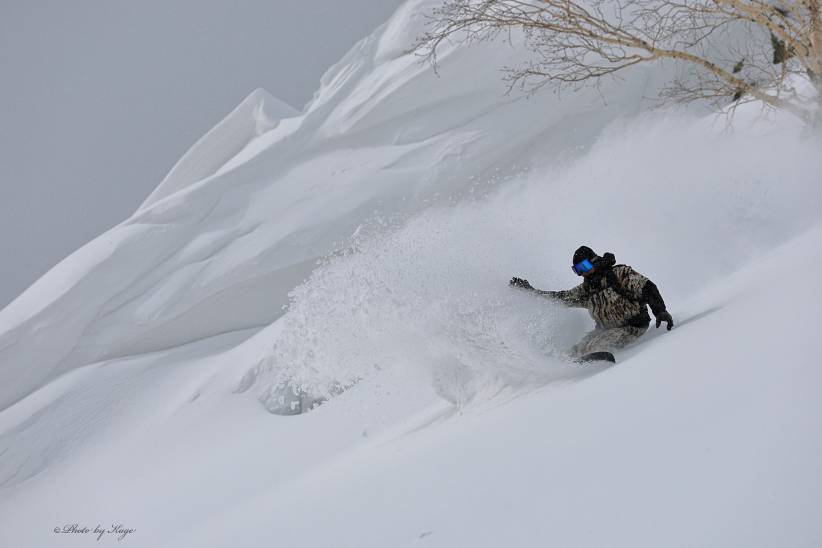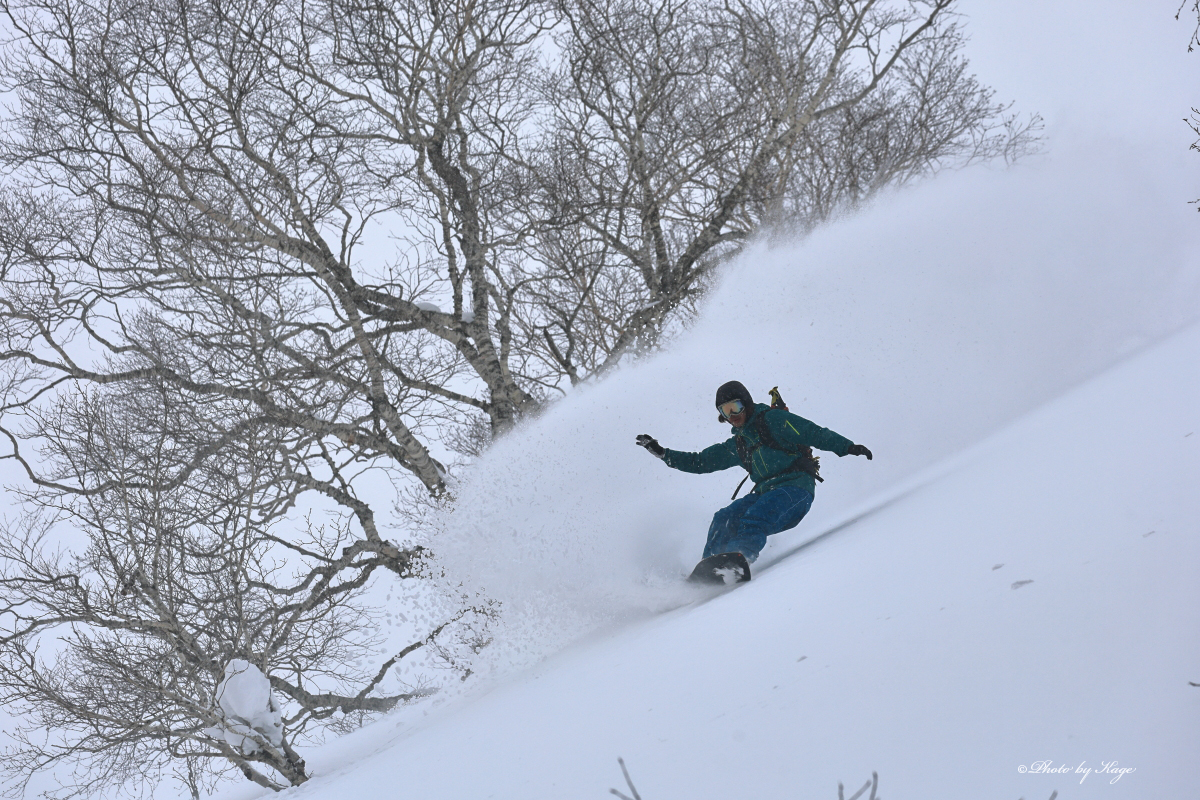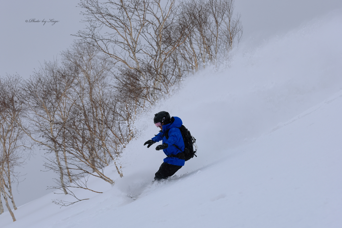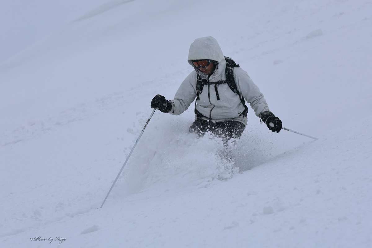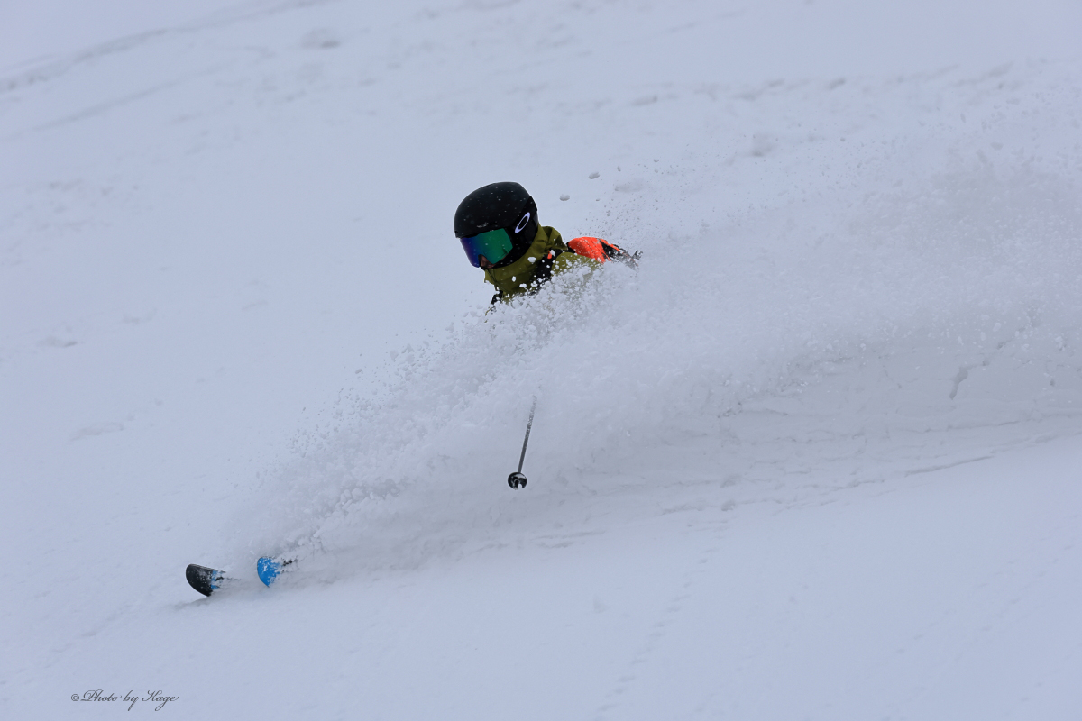 今日は滑走時になかなかバッチリと光のタイミングに合わなかったが、要所要所で光も来て気持ちの良いパウダーを滑れました。