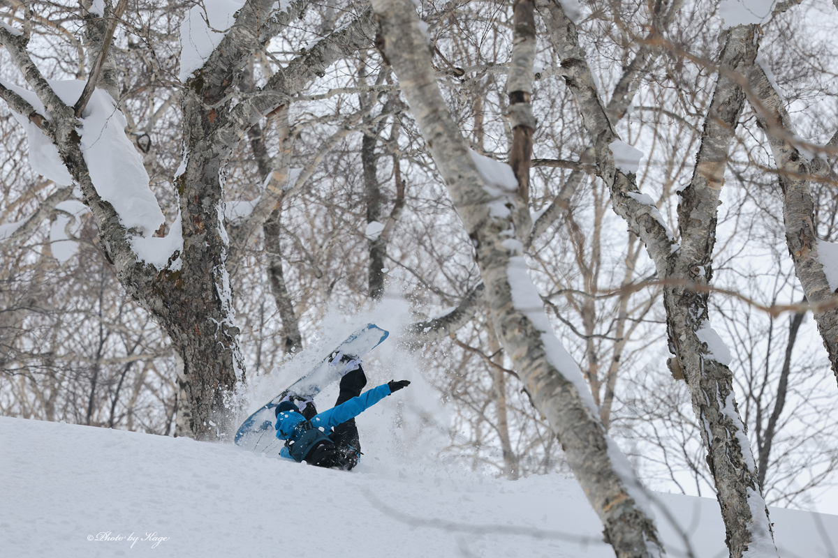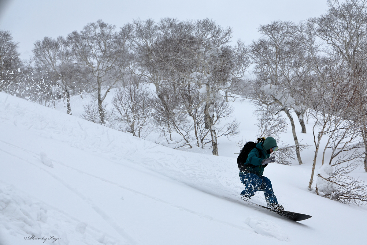今日は何と言っても2月とは思えぬ気温で蘭越町で+8.4℃、倶知安町で+7.7と4月上旬並みの気温まで上がりました。昨日も+3℃となっていたが、恐らくあそこの斜面はパウダーではないかと思って真っ先に向かったが、確かに種類で言ったらパウダーと呼べるのかもしれないが、大分ムッチリとしたクリームチーズ系でした。板は走るし、滑っていてとっても気持ちが良いのですが、もうちょっとドライなパウダーかと思っていたのだがと、僕もリーダーガイドも岸君も「ここでこれならもうニセコにはパウダーが消えたのでは?」と首を傾げてしまいました。
