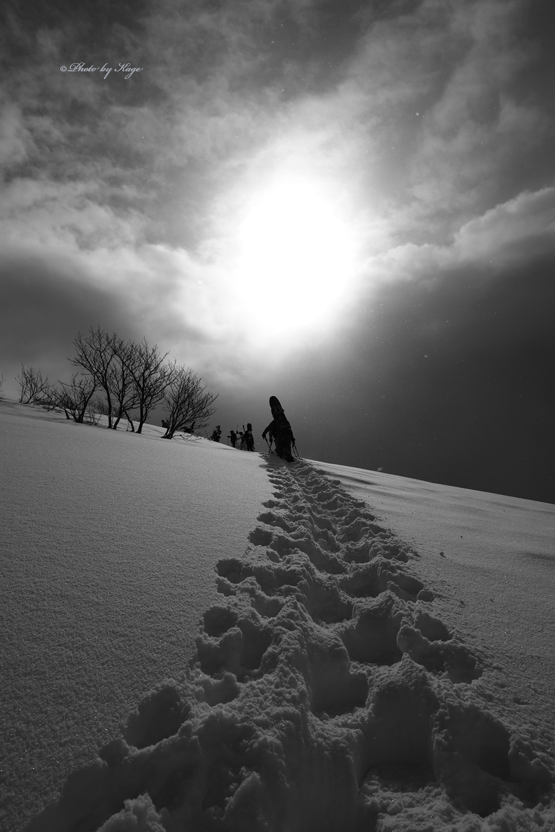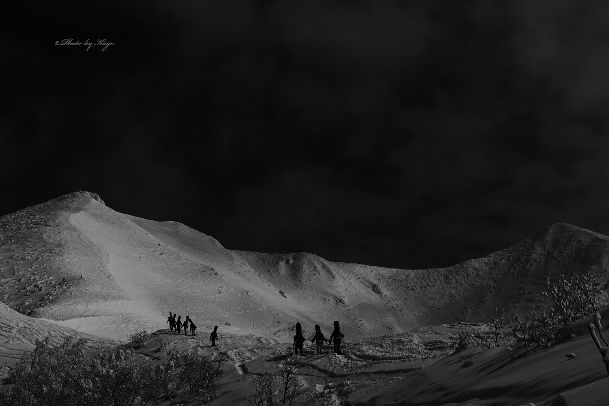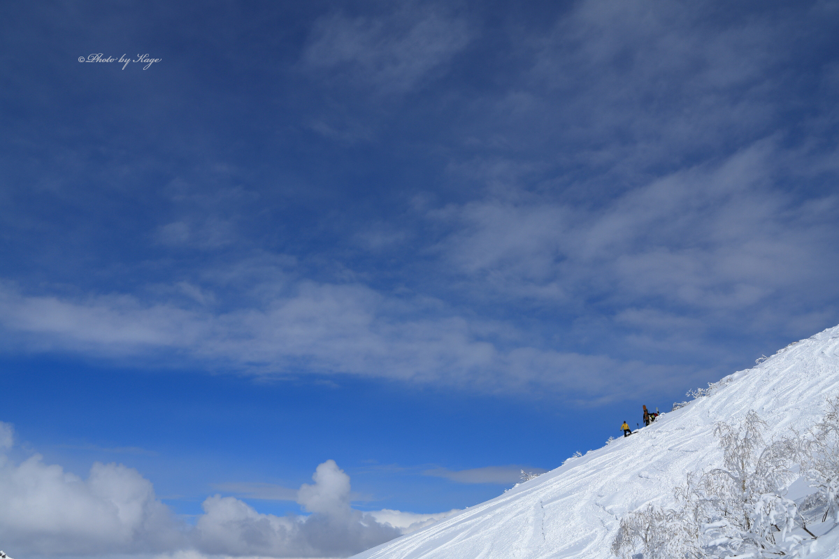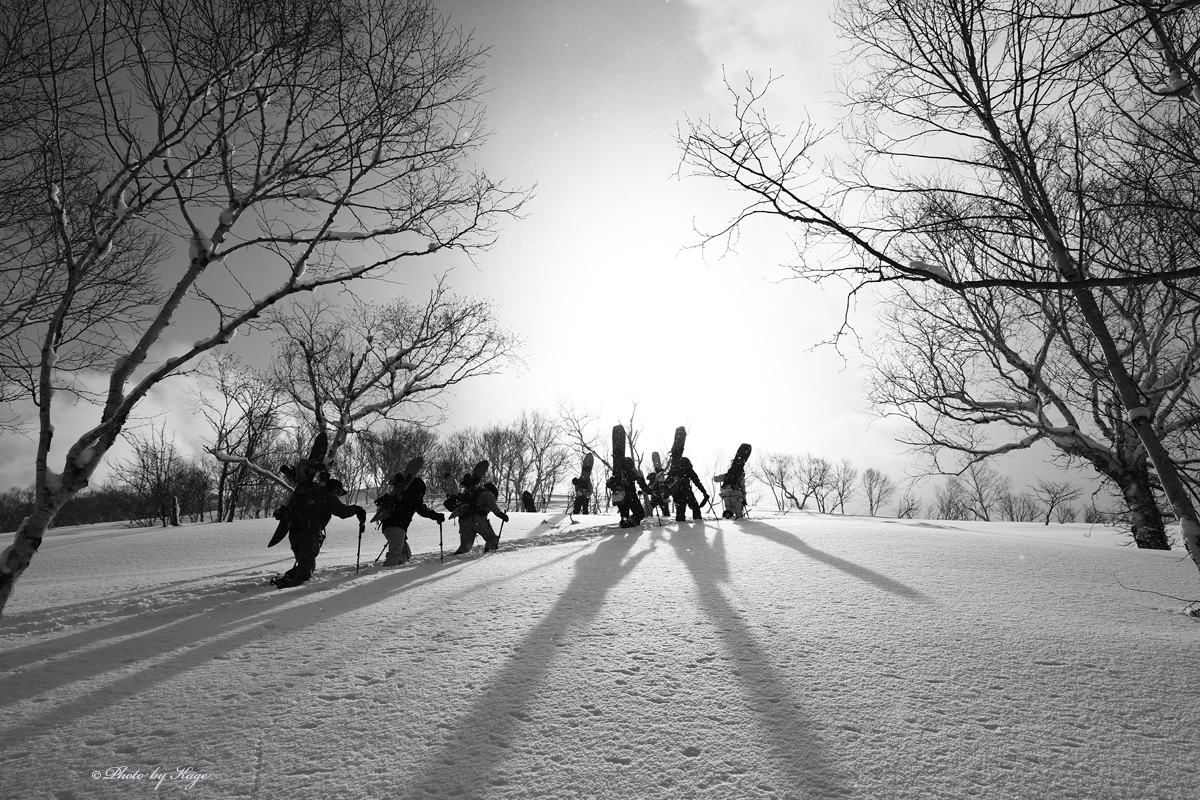 昨年僕が撮った写真をJ.W.さんが皆に見せて皆を誘い、今回総勢7名ものお客様を集めて来てくれました。リピートしてくれたのも嬉しいですし、僕の写真を見てこんなにも集まって来てくれたなんてとても嬉しいですね。Jさん、ありがとう!!今日も天気が良かったので、皆様の記念すべきバックカントリー初日の様子をプロカメラマンとして良い形に残す事が出来たと思います。