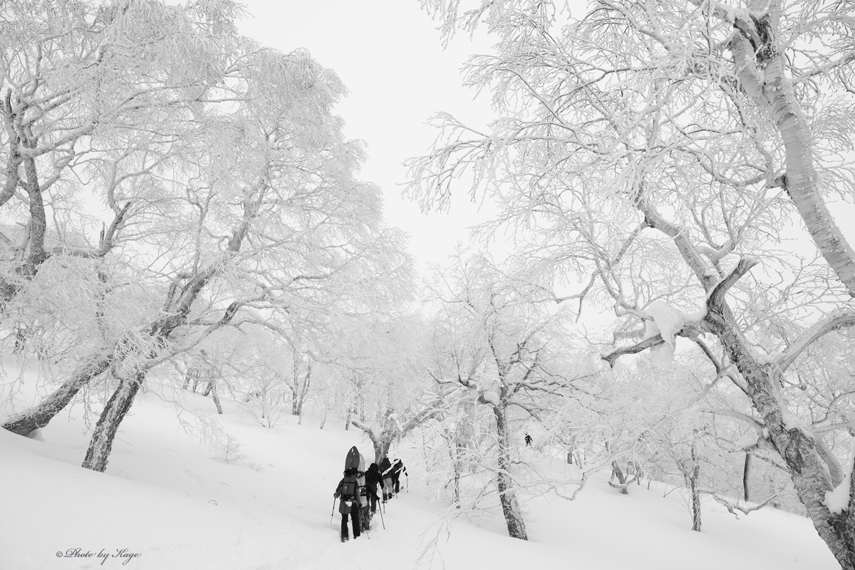 当初今日はお客様4名の予定であったが、今朝台湾人の常連Tちゃんがゲレンデを滑りにPowder Companyに来ていて「Tちゃん、今日リフトは強風でまともに動かないし、山は多分30cm位のパウダーだよ!一緒にツアーに行こうよ!!」と誘ったら急遽ツアーに参加してくれる事になった。一昨日ツアーに参加してくれた時は残念ながら僕は別のツアーに行っていて同行出来なかったし、あと一週間もしないで12月中旬から居たニセコを引き上げて台湾に帰ってしまうので最後にパウダーでのツアーに一緒に行っておきたかったので、今日参加してくれる事になって良かった。