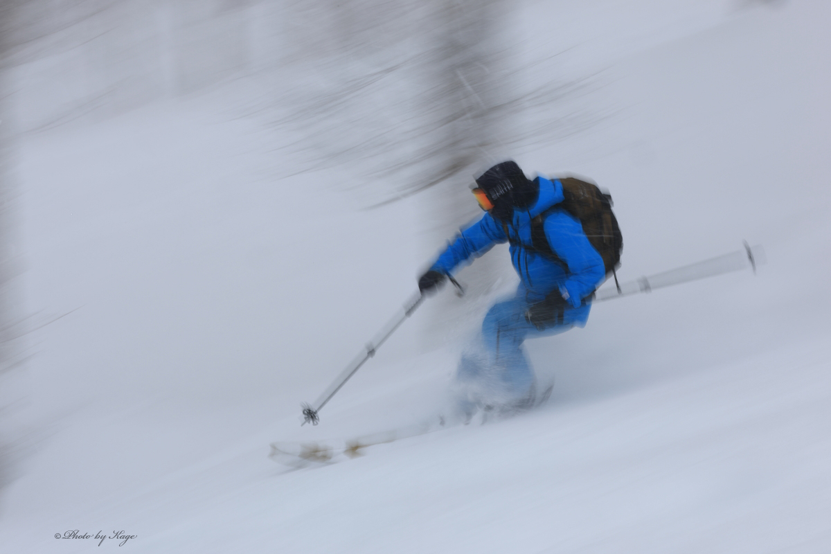昨日は+5℃ながら「ハイシーズンのようなスプレーが帰って来た!!」とBlogで書きましたが、昨日の夕方以降に南寄りの強風から今度は真反対の北寄りの強風へと変わりまとまった降雪を期待していましたが、残念ながら朝起きるとニセコ町の僕の家では朝からプラス気温で雨に近いような超湿雪が1cm程積もった程度でした。しかし、山では昨日の夕方からずっと雪が降っていたようで恐らく山では20~30cm位積もっているのでは?と予想していた。風が真反対の強風に切り替わったものの、斜面の方角と地形、標高を考慮して行く場所をチョイスすれば昨日よりもグッドコンディションだろうと思っていた。