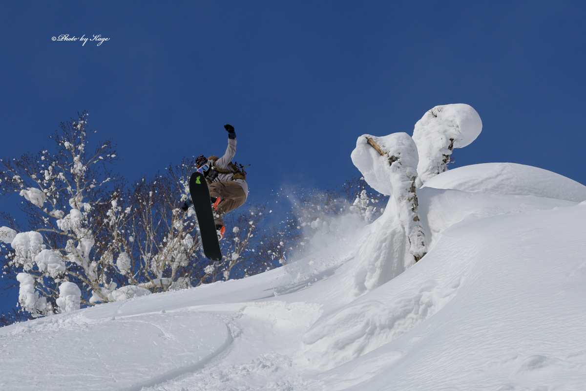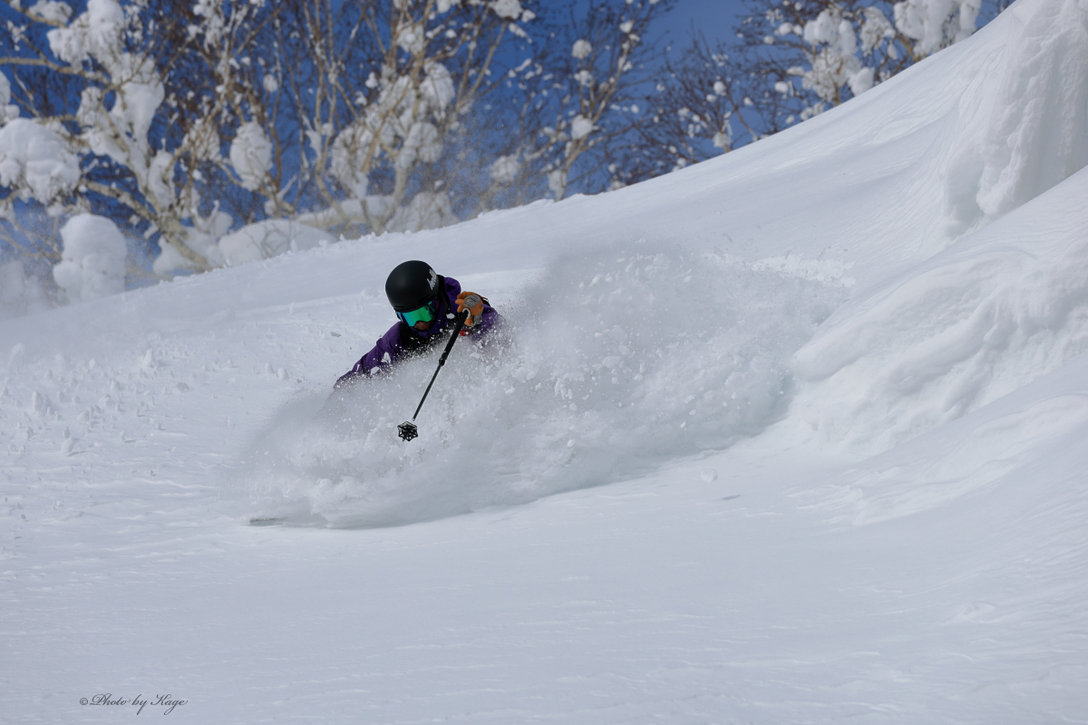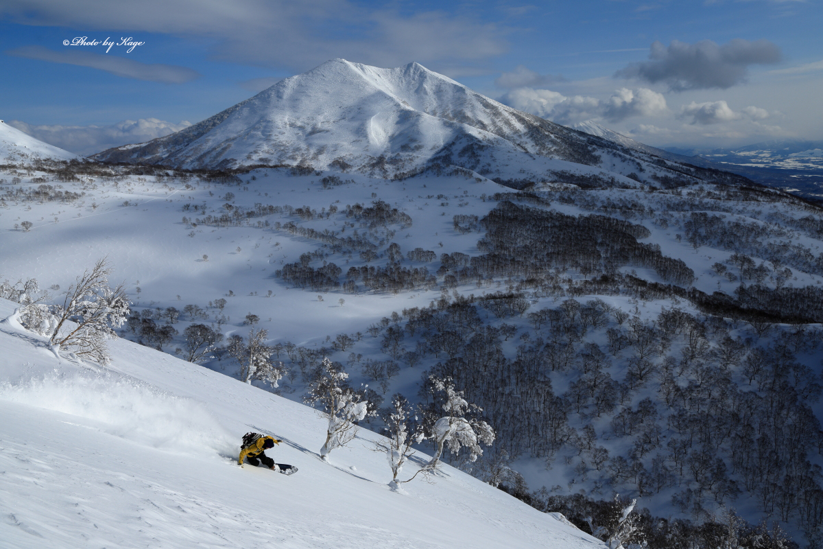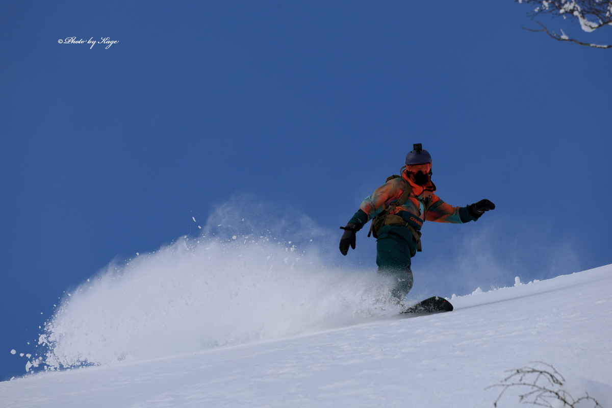 今季ニセコに長期滞在しているカリフォルニア出身のスキーインストラクターJさん。流石にスキーが上手い。