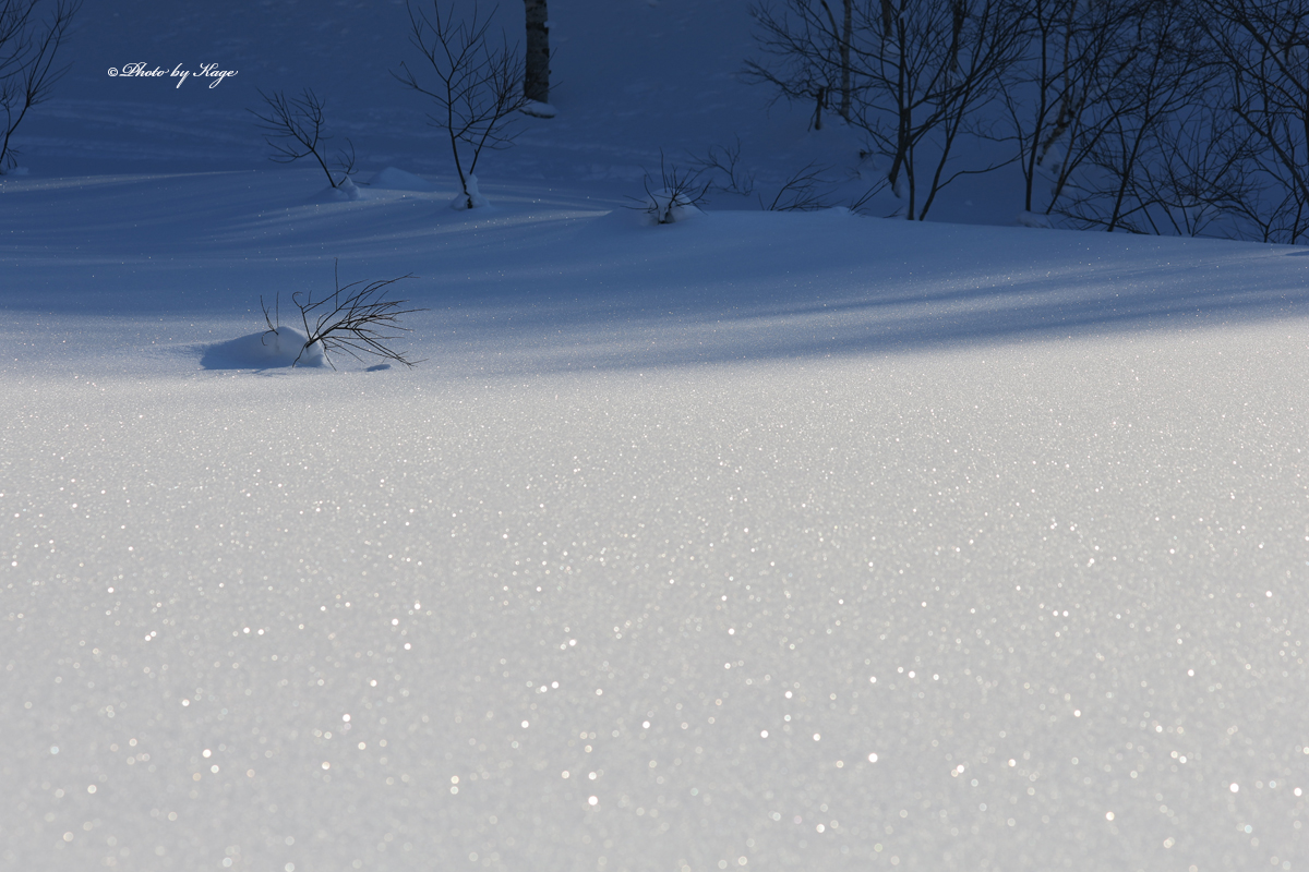 放射冷却で冷え込み、雪はダイヤモンドを散りばめたかのようにキラキラと綺麗でした。