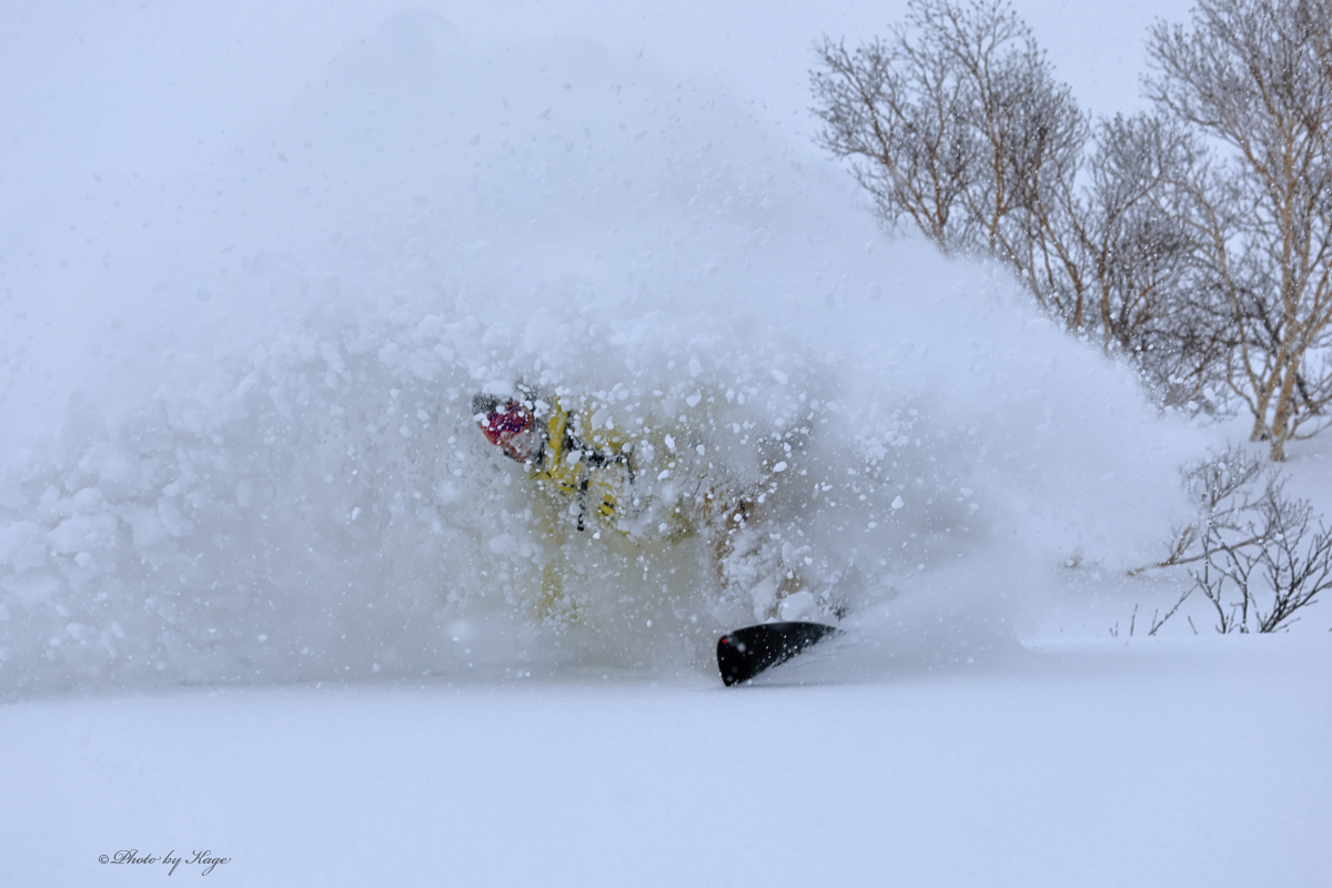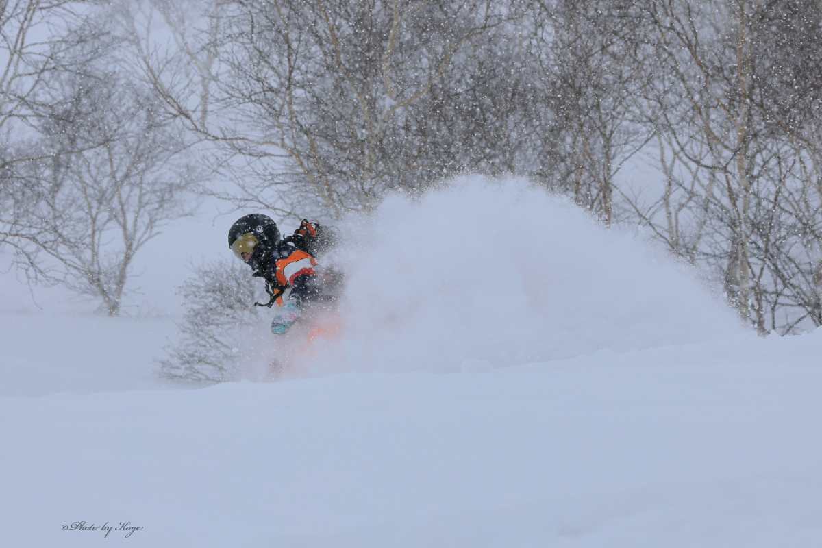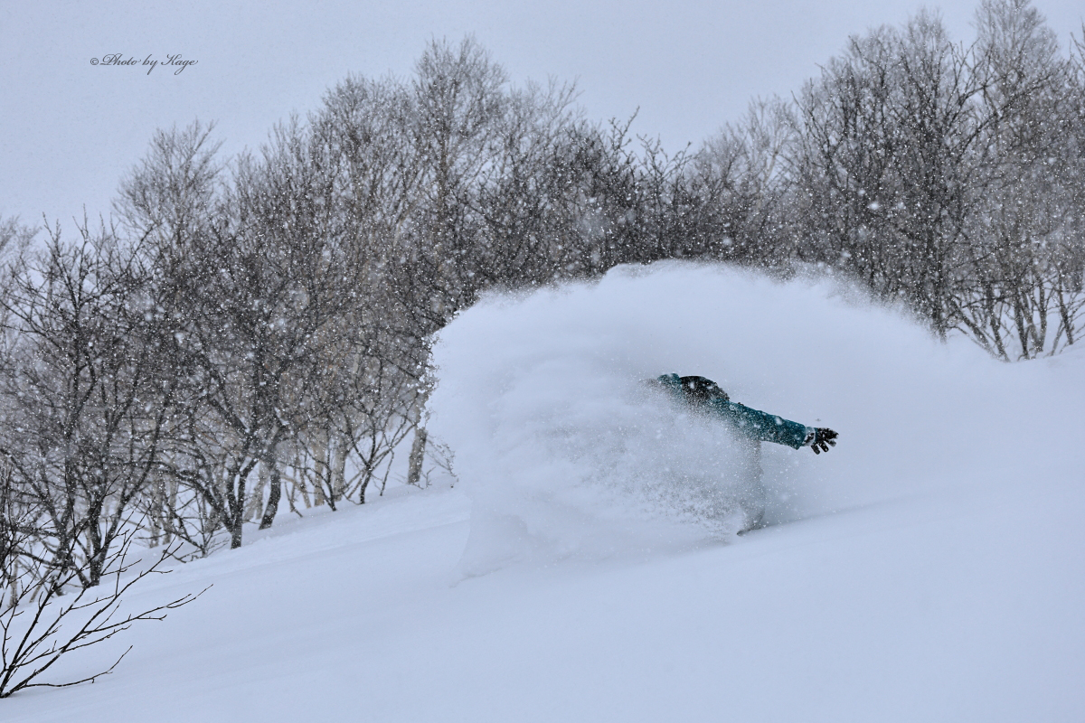 今日は光のタイミングが合わず、大粒の雪が降ったり、湿った雪でカメラが凍ったりと撮影には厳しい条件でしたが、パウダー復活してくれただけで最高です。
